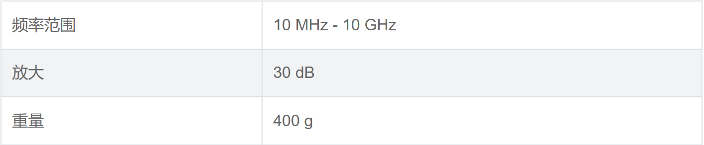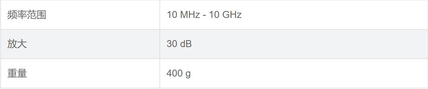 前置放大器PA 303用于放大测试信号,例如对高分辨率近场探头的微弱信号进行放大。PA 303采用外接电源供电,并连接到频谱分析仪或示波器的50Ω输入端。前置放大器的输入端通过相应的电缆与近场探头连接。PA 303的输入输出端口采用50ΩBNC(PA 303BNC),SMA型(PA 303 SMA)或者N型(PA 303N)连接器。